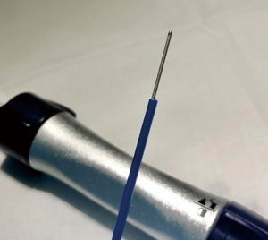 Should we use suction during this step? As with all EBUS-TBNA procedures, we rely on the ultrasound features of the lymph node/lesion and its vascularization in Doppler mode to make this decision. If we observe grade 2 or higher vascularization, suction is typically not used. The use of suction and the specific characteristics of the 22-gauge 3-point needle tip with crown cut (Figure 4), also aid in creating a more distinct trace mark within the lesion, which will serve as a guide for the tunneling step and insertion of the cryoprobe. How many passes are typically performed during the puncture step? This step involves a conventional EBUS-TBNA. Our standard practice is to make 8–12 passes during each TBNA, which is also applicable in this step.